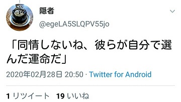 — 隠者 (@egeLA5SLQPV55jo) 2020年2月28日