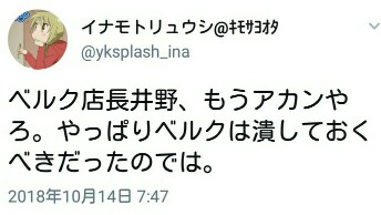 ベルク店長井野、もうアカンやろ。やっぱりベルクは潰しておくべきだったのでは。